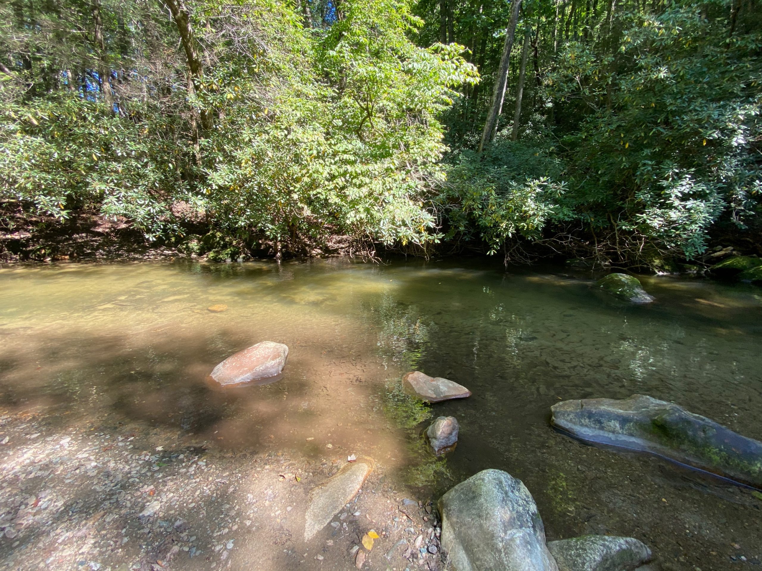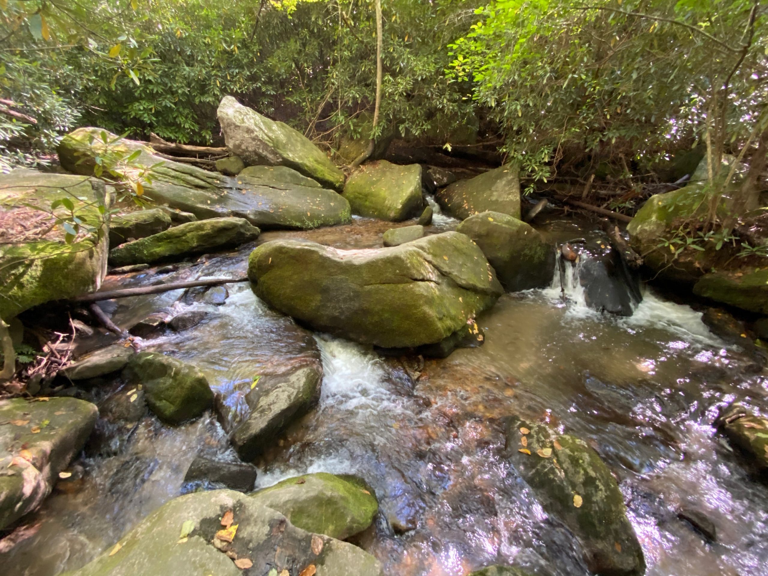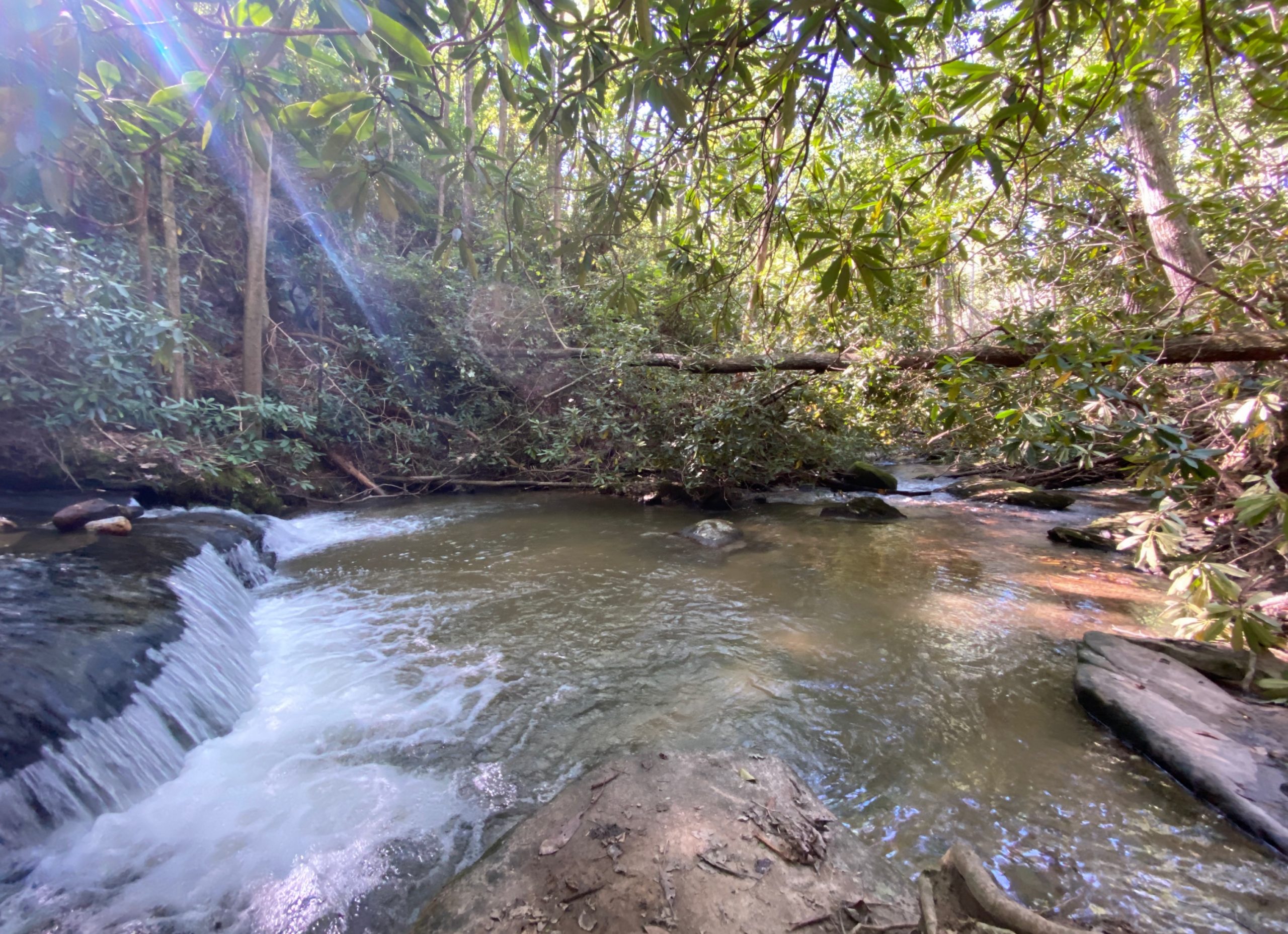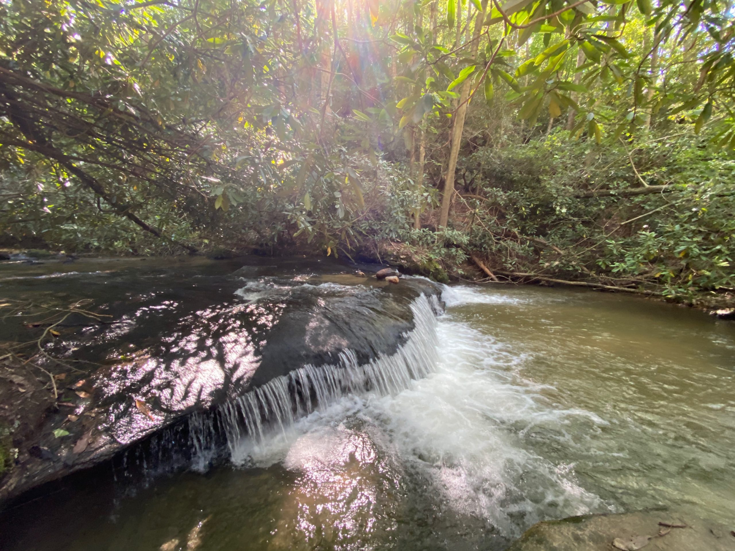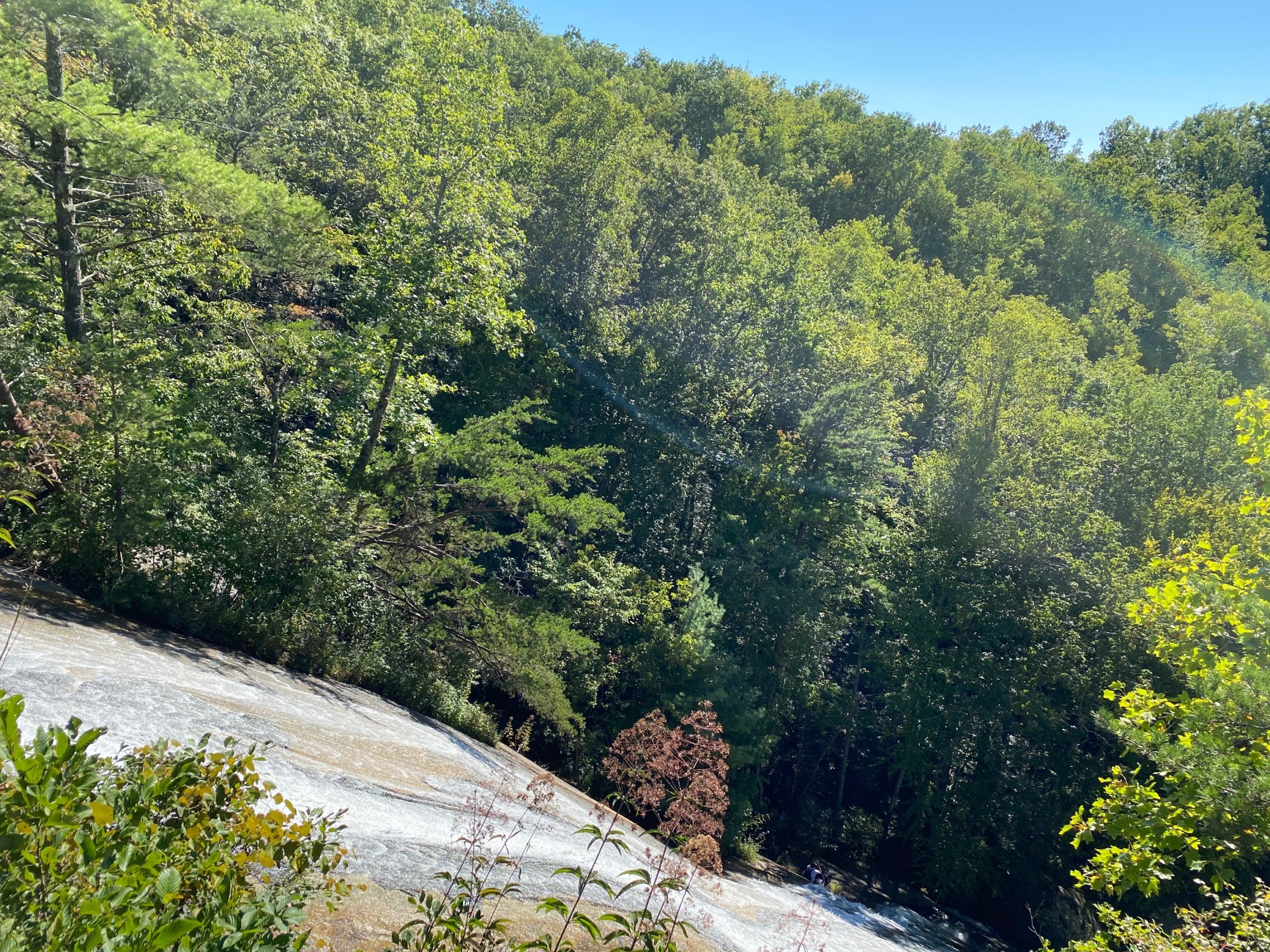After about a twenty-minute hike from my starting point, I finally reached the 200-foot sliding waterfall. I took some photos, enjoyed the crisp, cool mountain waters, and dipped my feet in the bottom pool. Someone was kind and took a photo of me, since that is the one downfall of hiking alone.