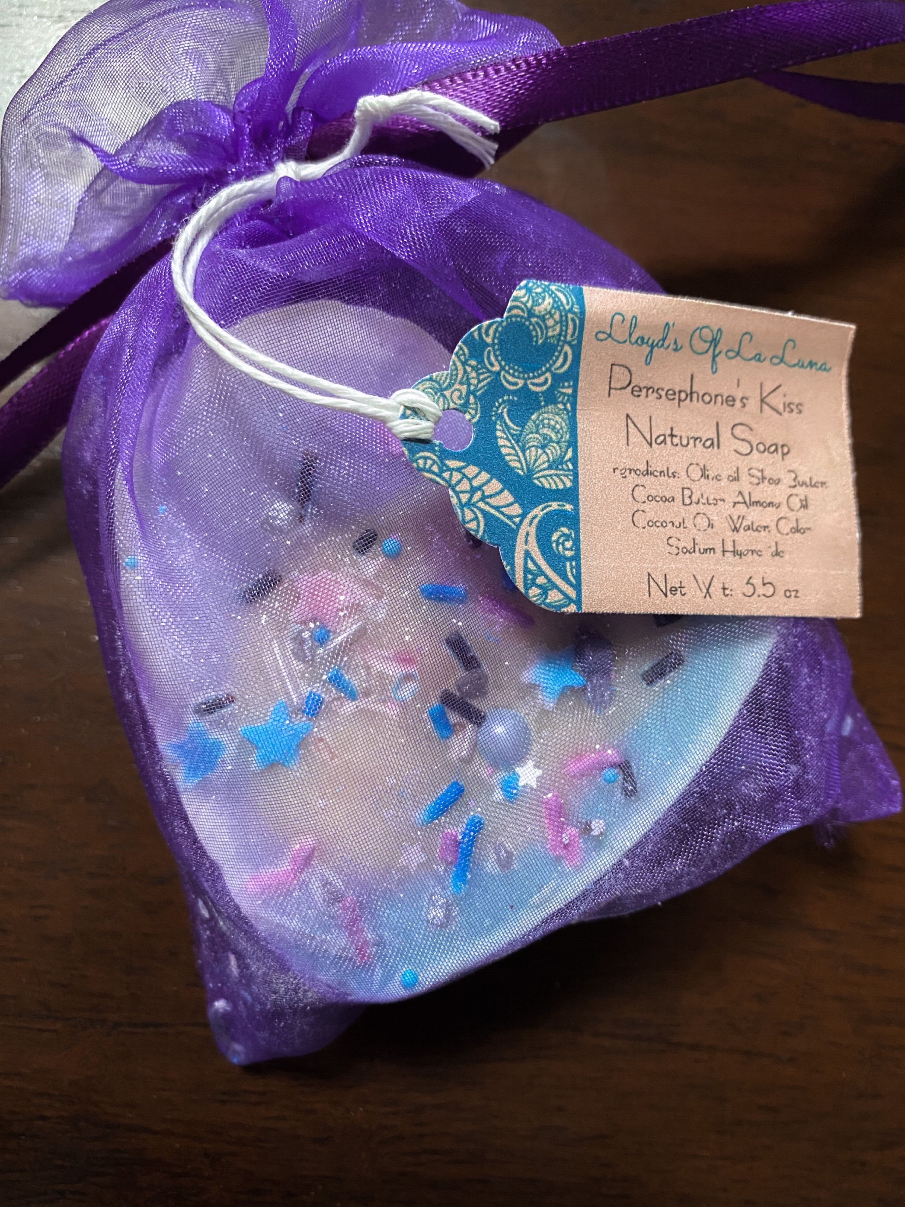 Since these are made in small batches, this is currently the only scent available for online purchase here. The natural bar of soap was the Persephone Kiss natural bar of soap ( currently on sale for $2) and I loved the unique colors and sparkles incorporated in the soap. It has a subtle coconut smell which is very pleasant and you can snag it here. I loved how all of these products complemented each other and were made with so much love and care.